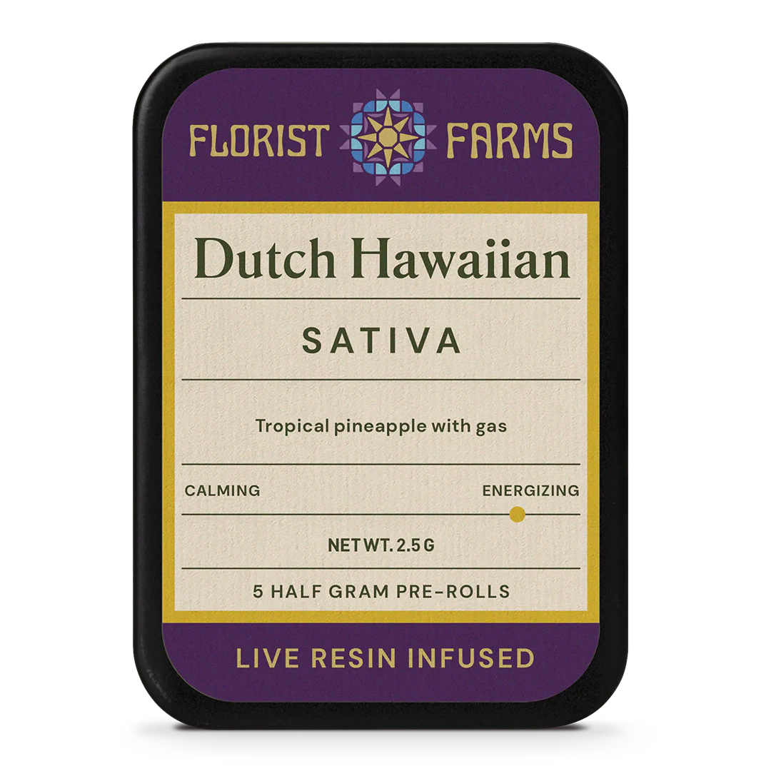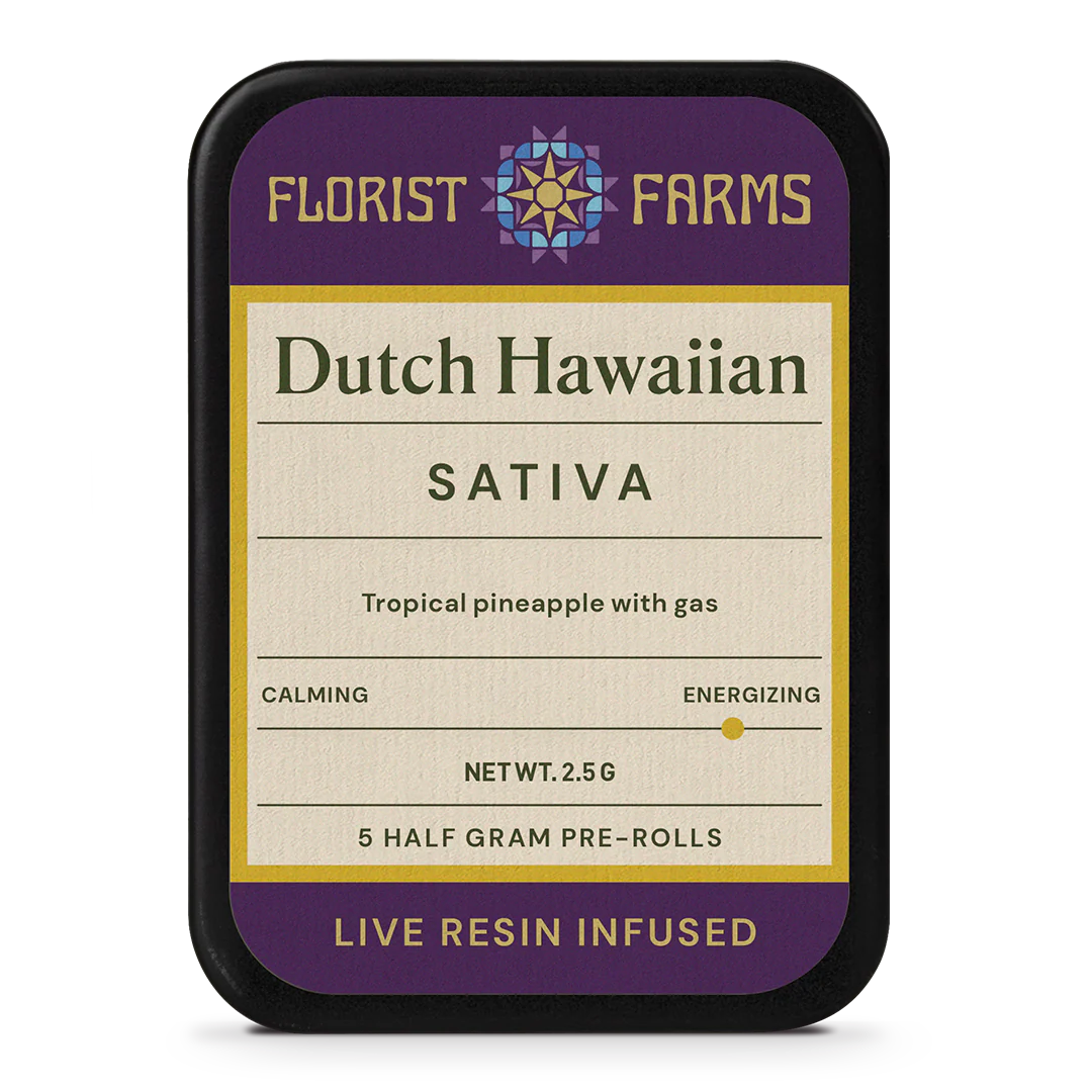 Big, fragrant, tropical buds are the trademark of this Dutch Treat and Hawaiian Sativa cross. This juicy flower is the perfect prequel to exercise or just a joyful jaunt around the block after dinner. Blissful and floaty, you're sure to find yourself savoring the little things. Infused with our expertly-crafted live resin sugar, these pocketable prerolls pack a terpene-rich flavor punch.