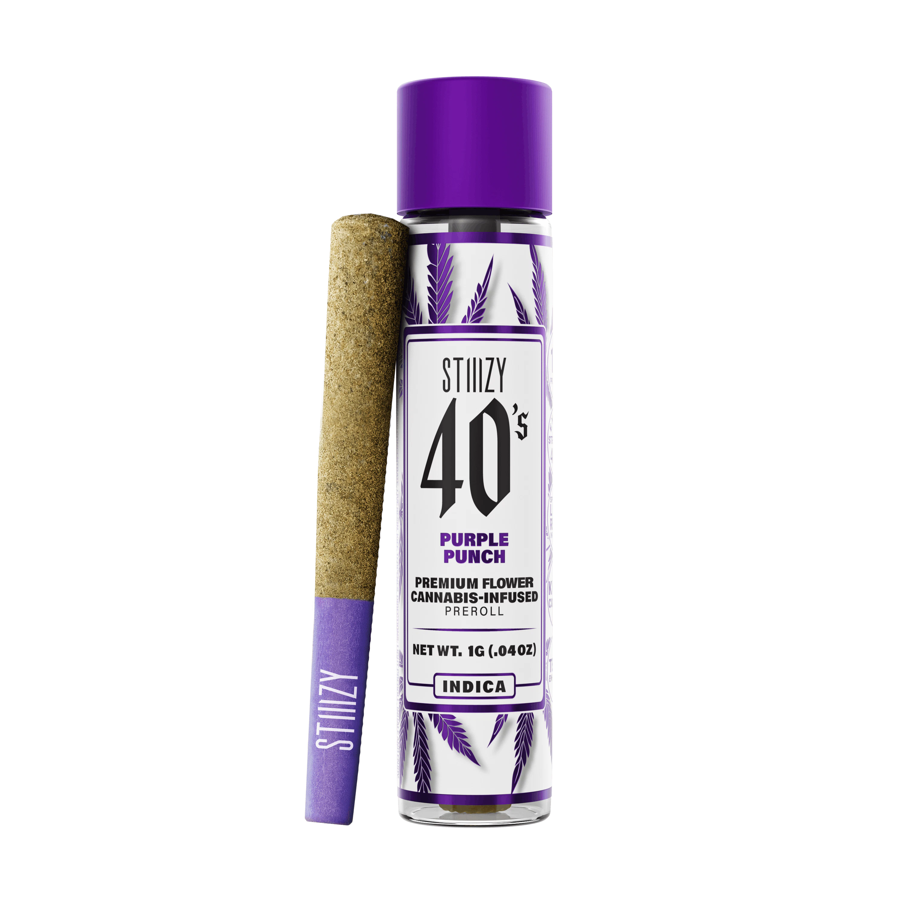 Elevate your pre-roll game. Stiiizy 40s pre-rolls are setting the standard with high potency, cannabis infused joints coated evenly with kief. Using our proprietary live resin infusion methods, we’ve designed every pre-roll to offer 40%+ THC potency with a unique flavor profile. With a smooth inhale and tasteful exhale, each and every Stiiizy 40 is packed with indoor grown flower, specifically made to ensure a potent and long-lasting high. Spark up the 40s.