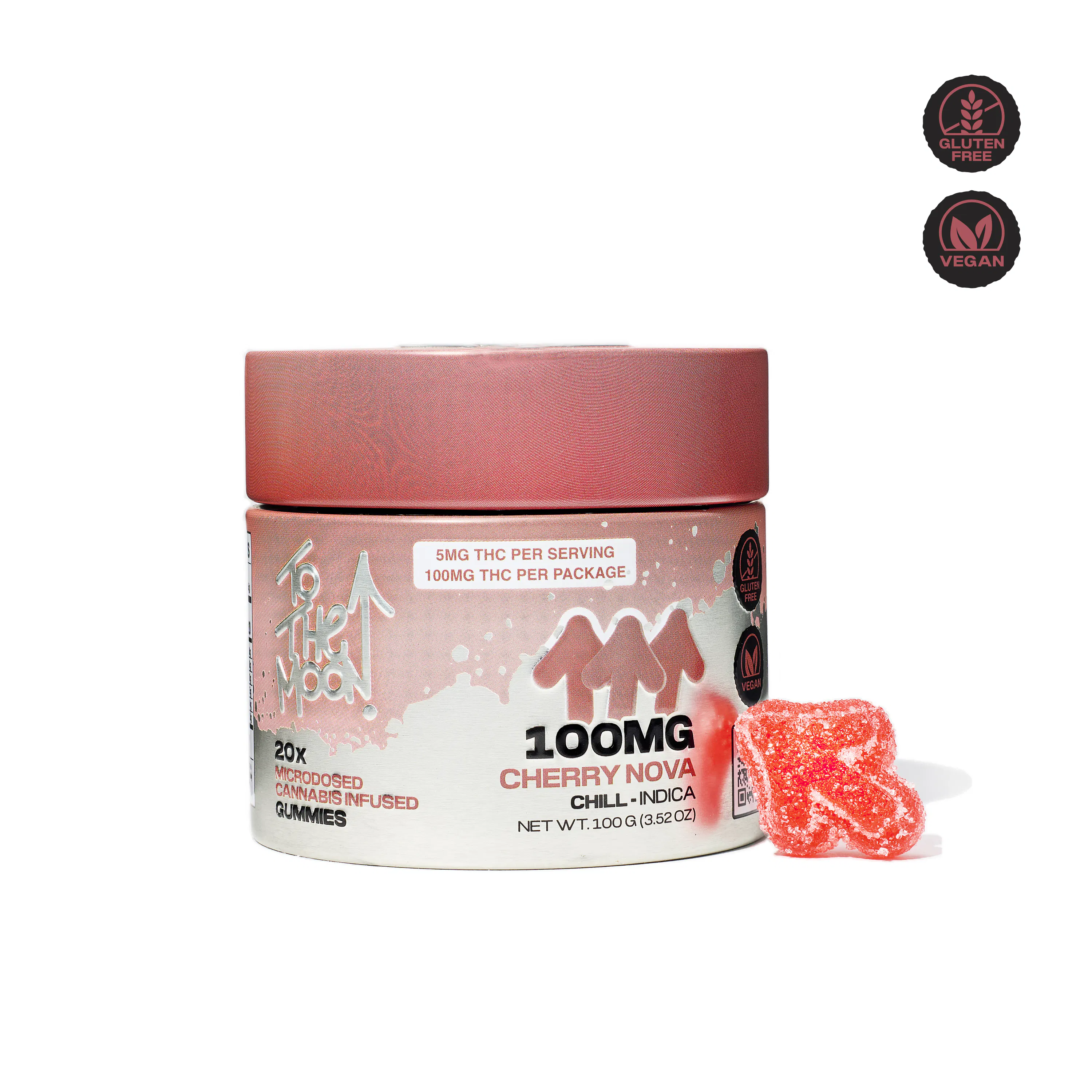 Drift off into tranquility with our Cherry Nova Chill gummies. Each bite-sized arrow candy melts 5mg of Indica THC for a relaxing and mellow experience. Perfect for winding down after a long day or enjoying a restful night's sleep. Indulge in the taste of sweet cherries as you blissfully melt into deep relaxation.